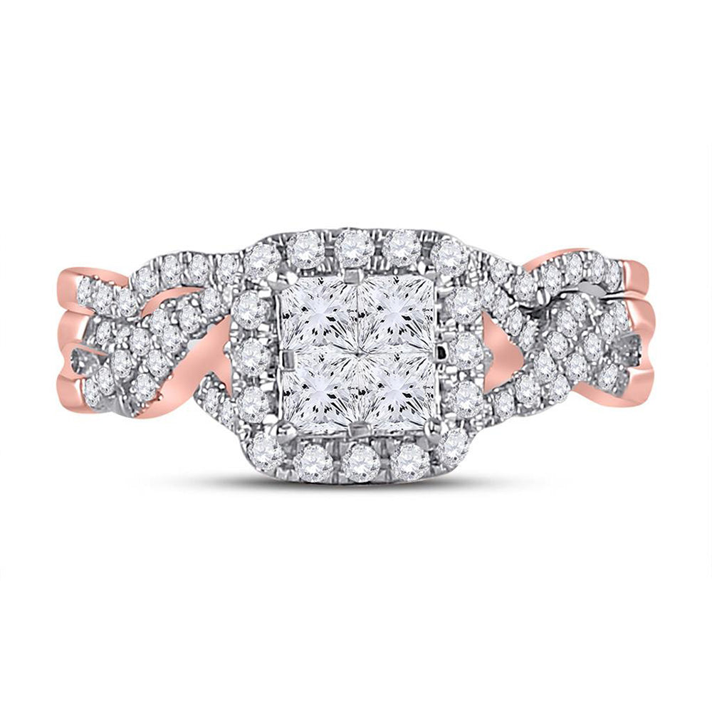 10kt Rose Gold Princess Diamond Square Bridal Wedding Ring Band Set 1 Cttw