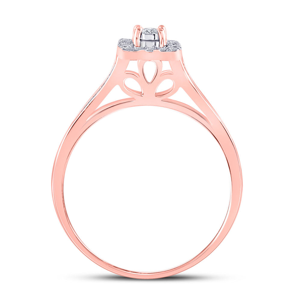 10kt Rose Gold Round Diamond Halo Bridal Wedding Ring Band Set 1/2 Cttw