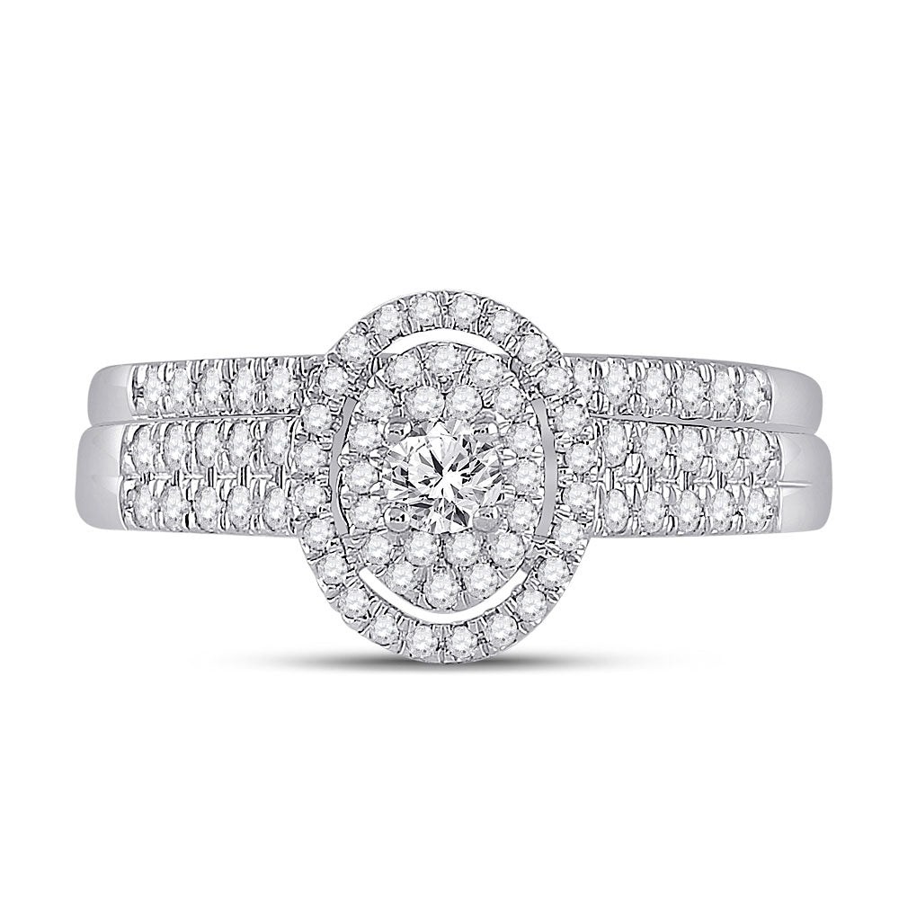 Lazaro 10kt White Gold Round Diamond Bridal Wedding Ring Band Set 1/2 Cttw