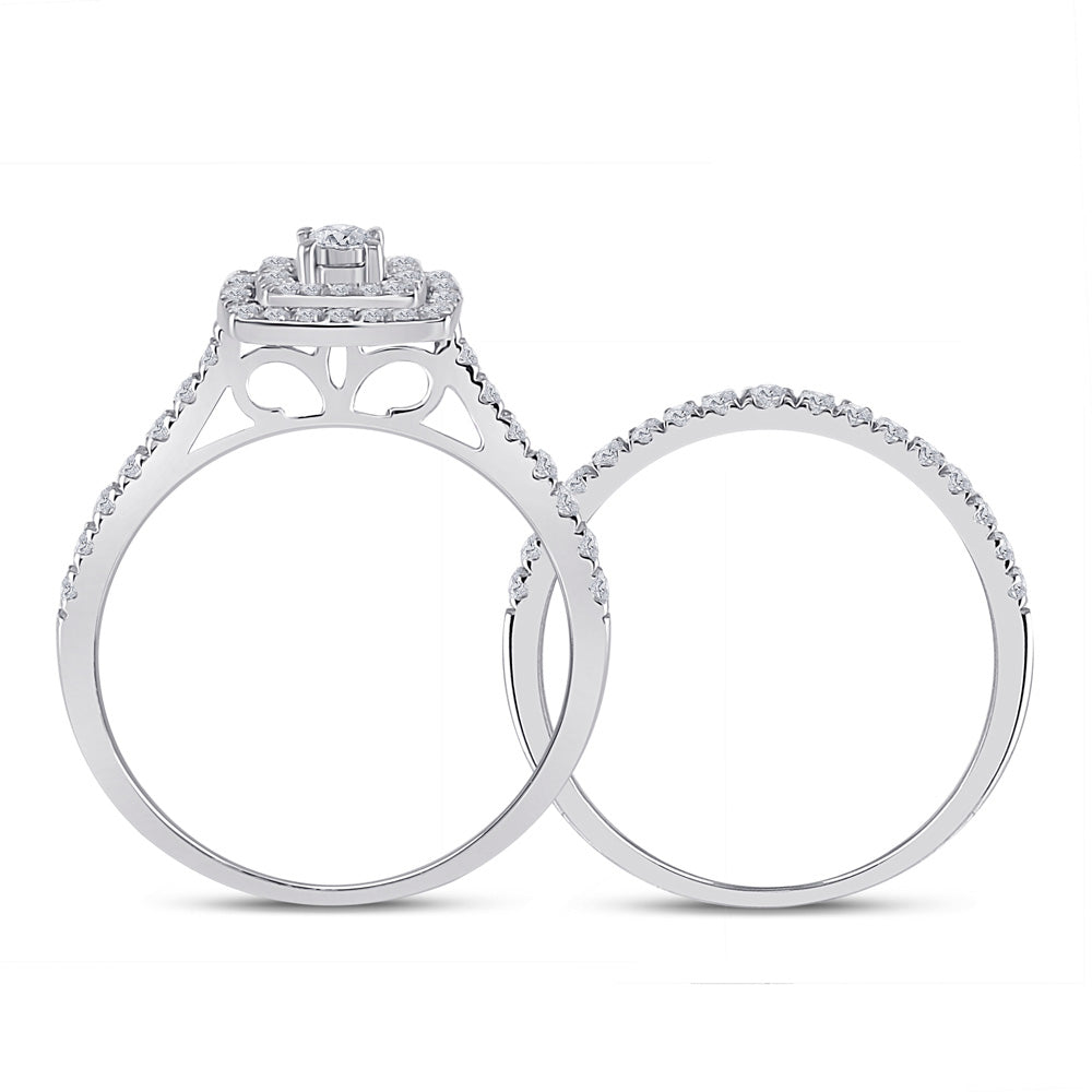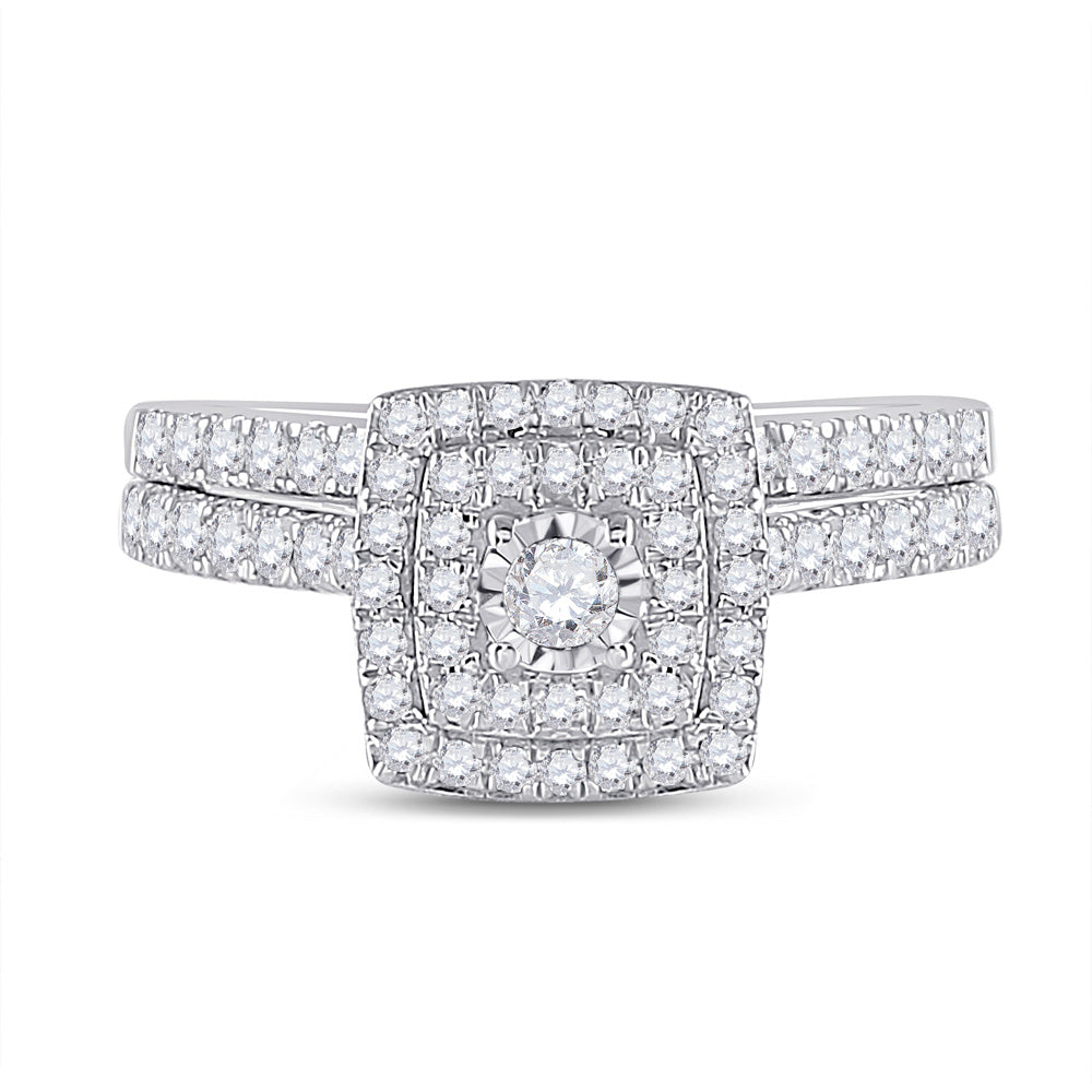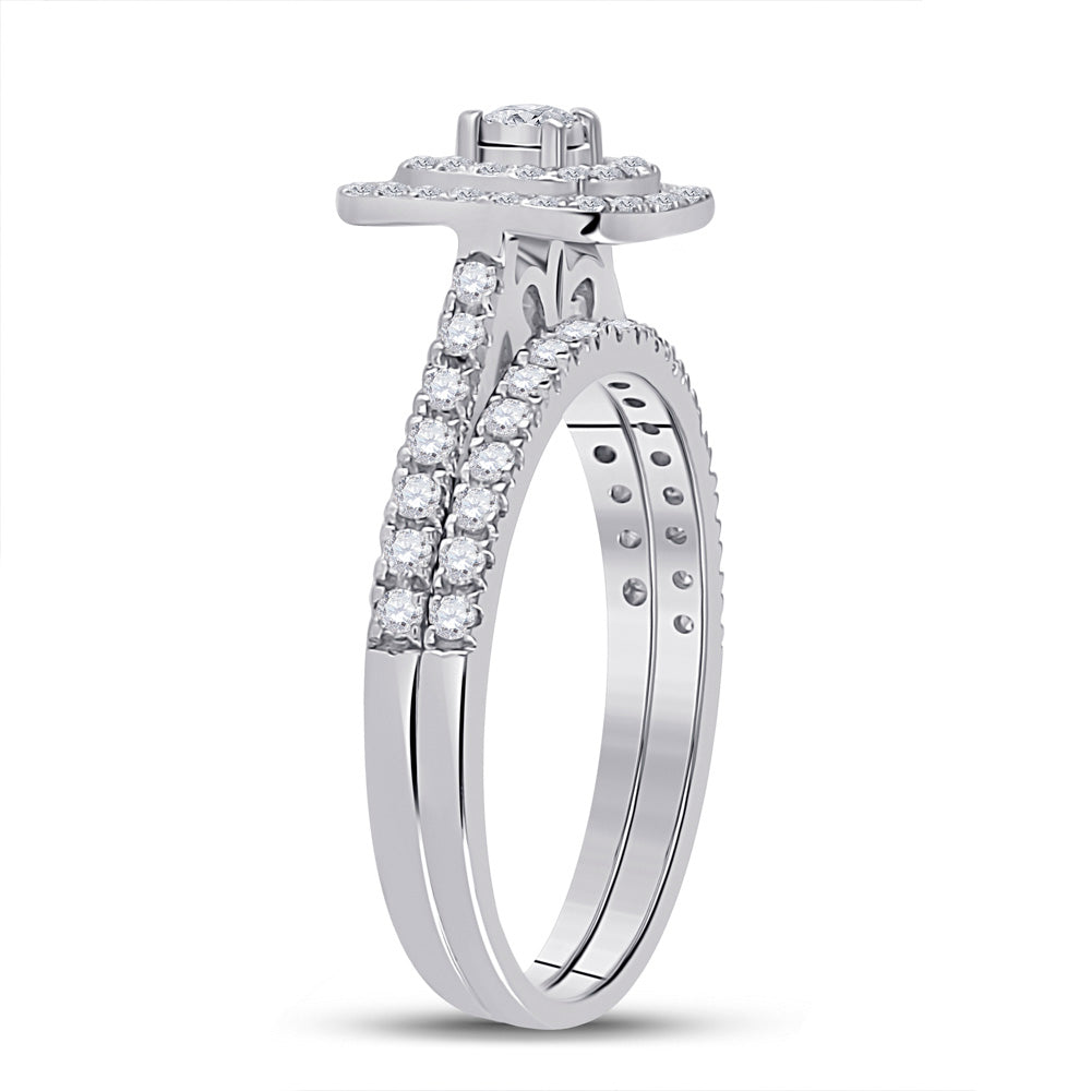 10kt White Gold Round Diamond Halo Bridal Wedding Ring Band Set 1/2 Cttw