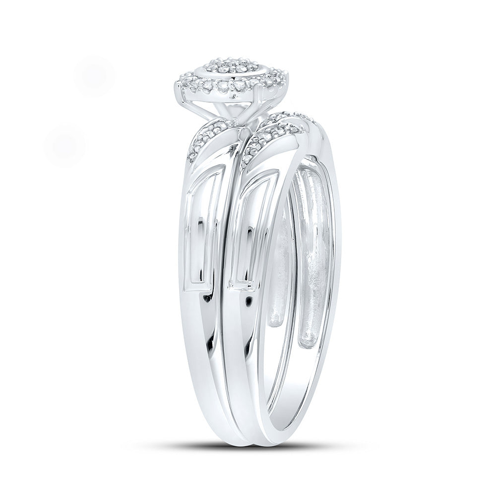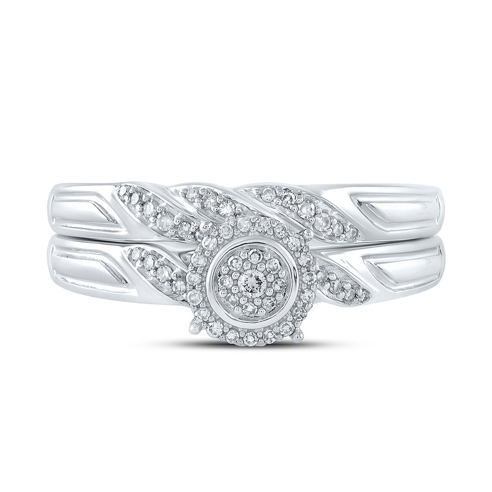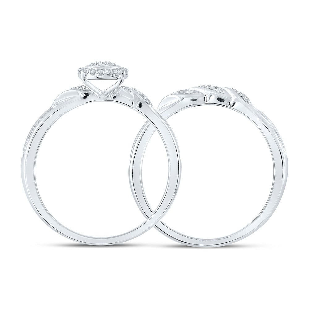 10kt White Gold Round Diamond Halo Bridal Wedding Ring Band Set 1/6 Cttw