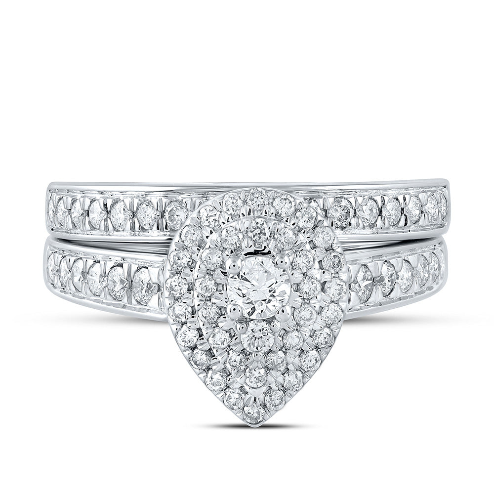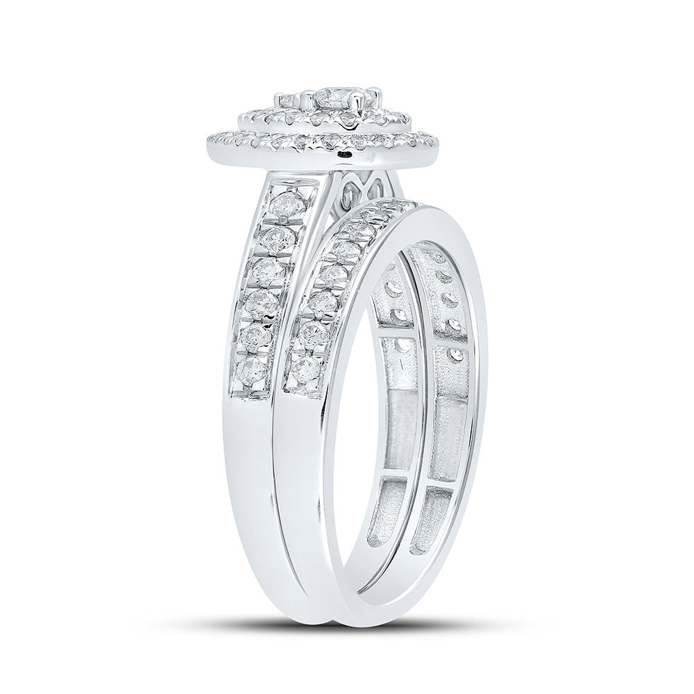 10kt White Gold Round Diamond Halo Bridal Wedding Ring Band Set 3/4 Cttw