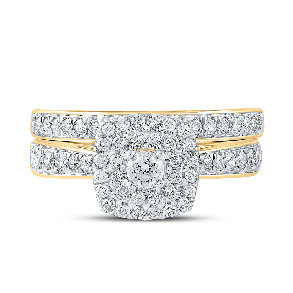 10kt Yellow Gold Round Diamond Halo Bridal Wedding Ring Band Set 3/4 Cttw
