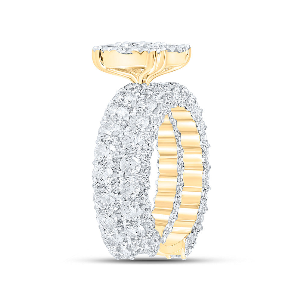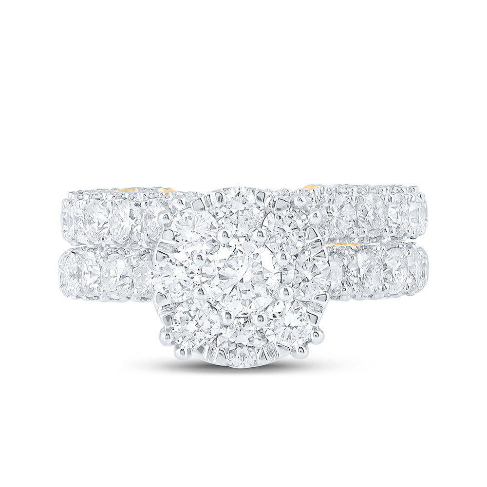 10kt Yellow Gold Round Diamond Halo Bridal Wedding Ring Band Set 5-7/8 Cttw