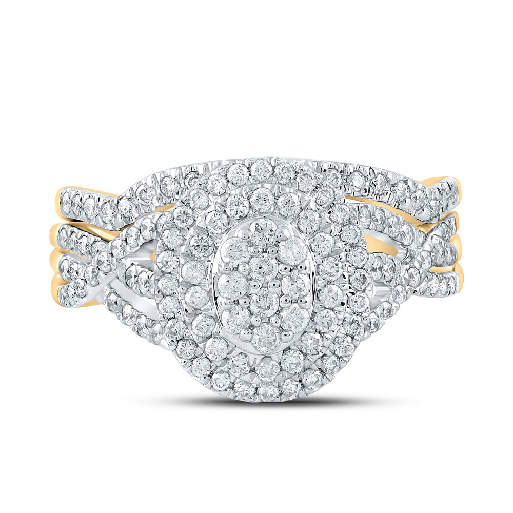 10kt Yellow Gold Round Diamond Oval Bridal Wedding Ring Band Set 3/4 Cttw