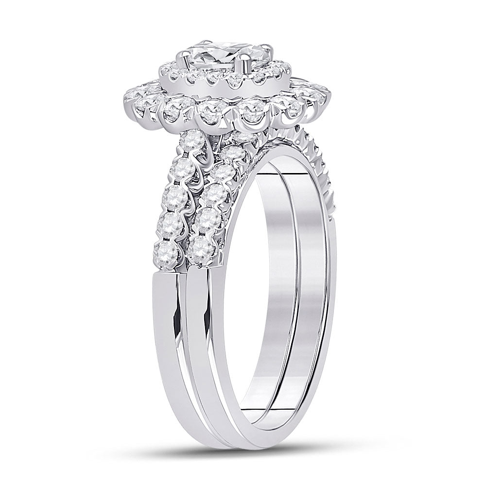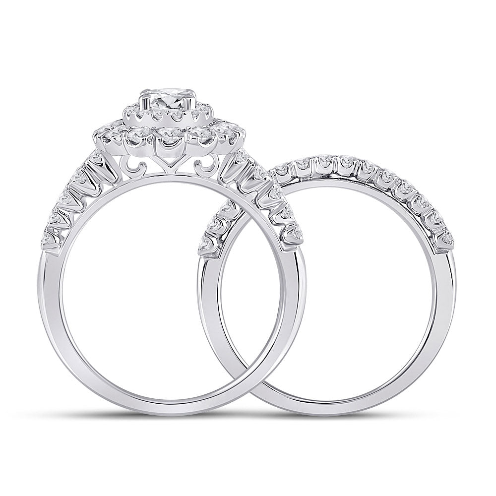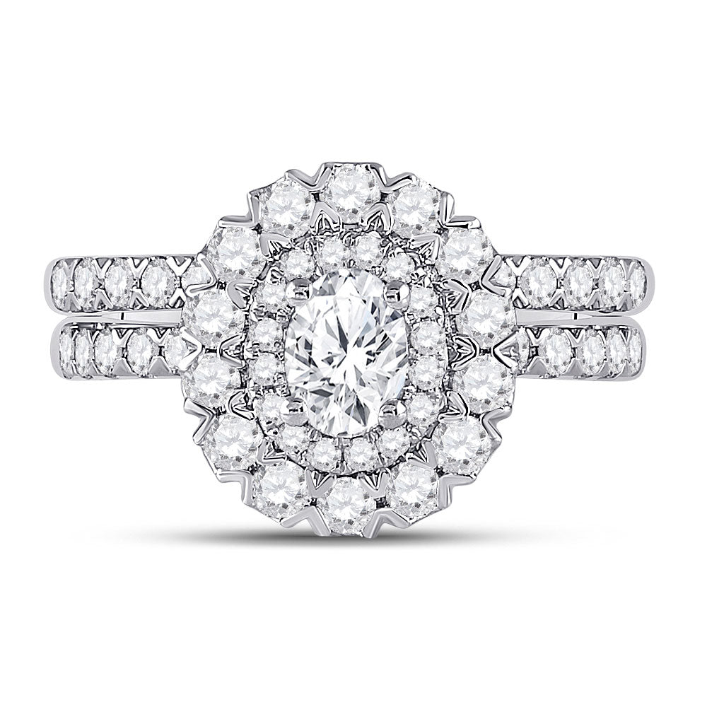 14kt White Gold Oval Diamond Bridal Wedding Ring Band Set 1-5/8 Cttw