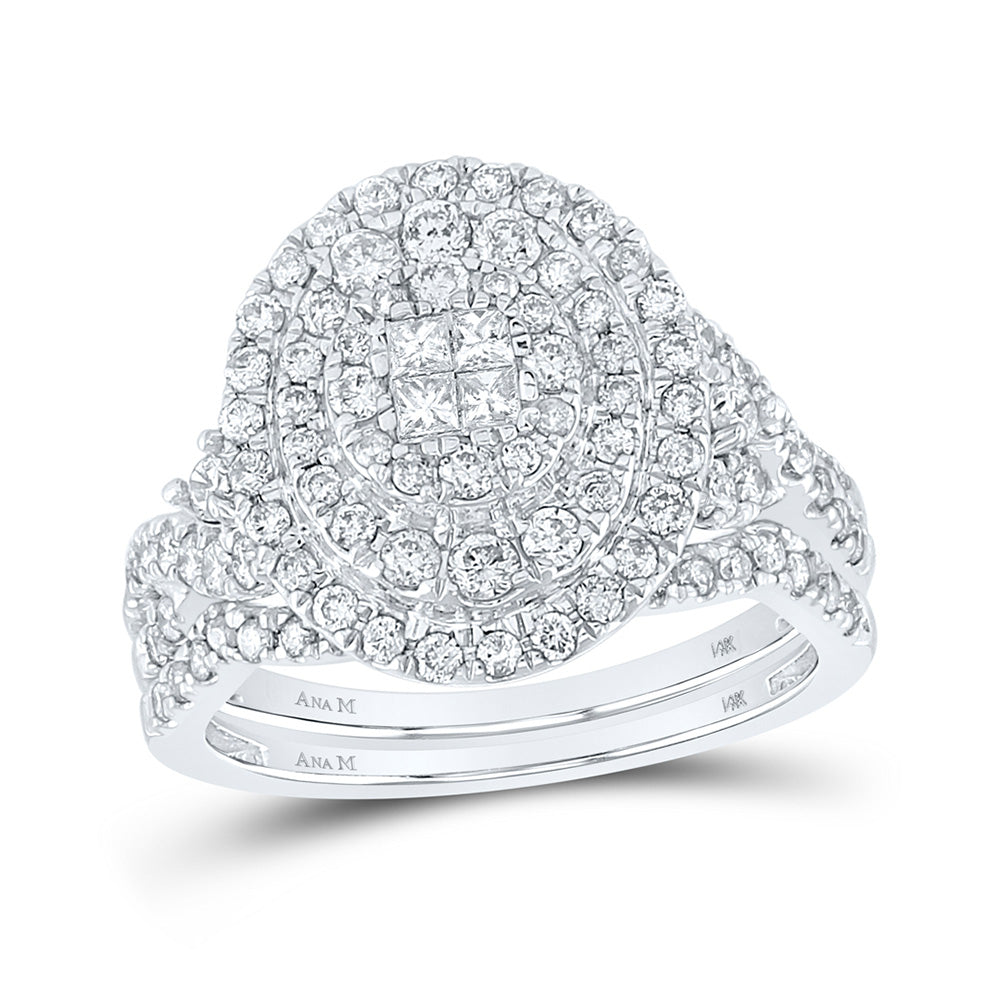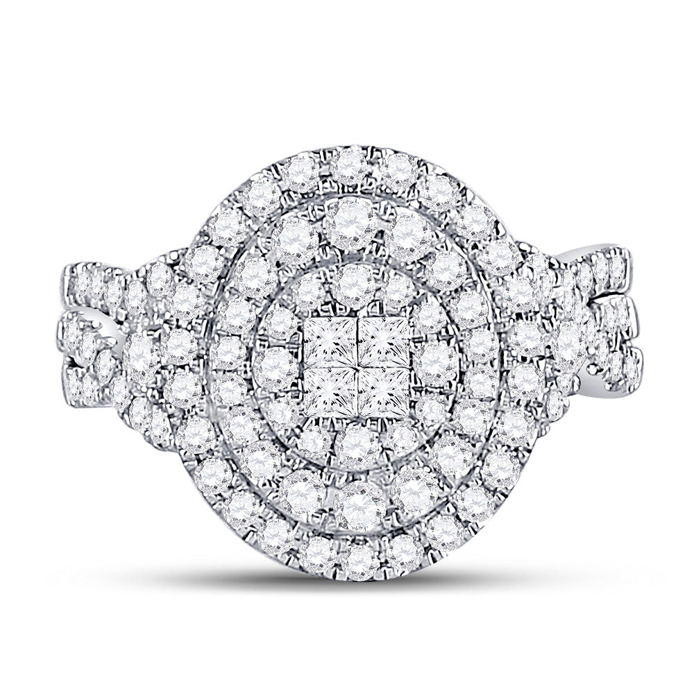14kt White Gold Princess Diamond Bridal Wedding Ring Band Set 1-1/4 Cttw