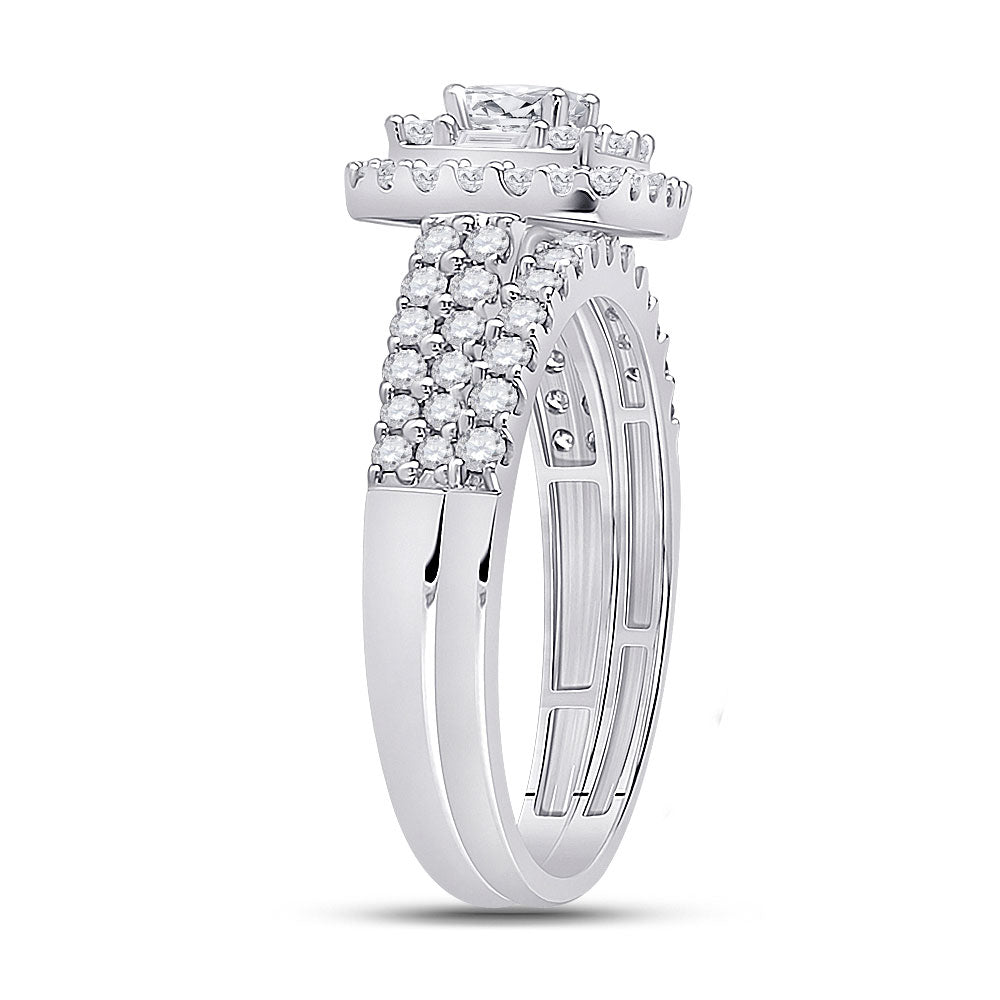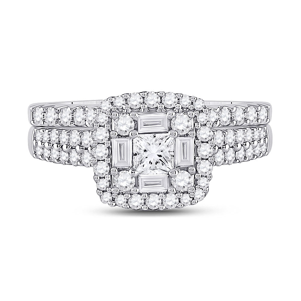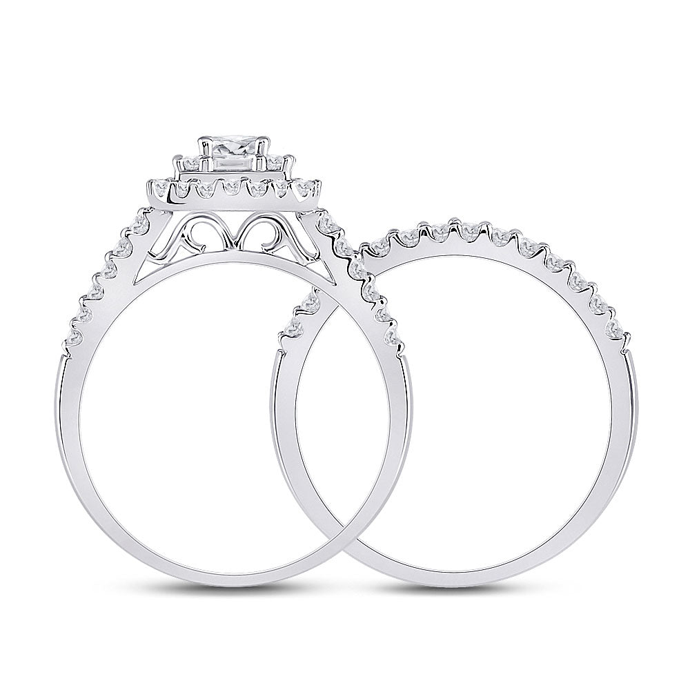 14kt White Gold Princess Diamond Square Bridal Wedding Ring Band Set 1 Cttw