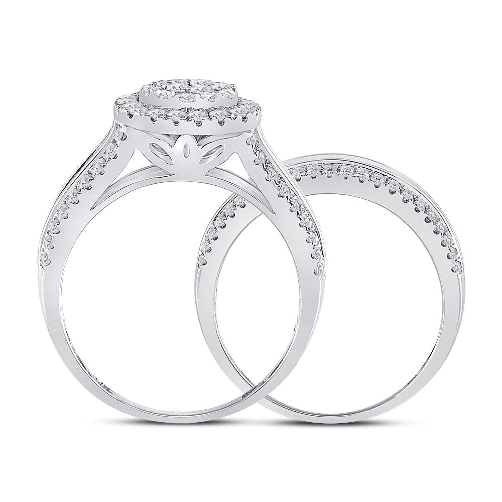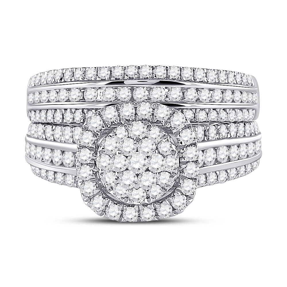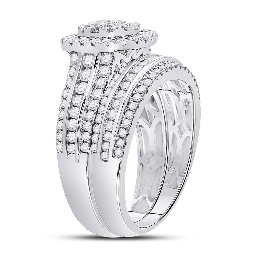 14kt White Gold Round Diamond Bridal Wedding Ring Band Set 1-1/2 Cttw