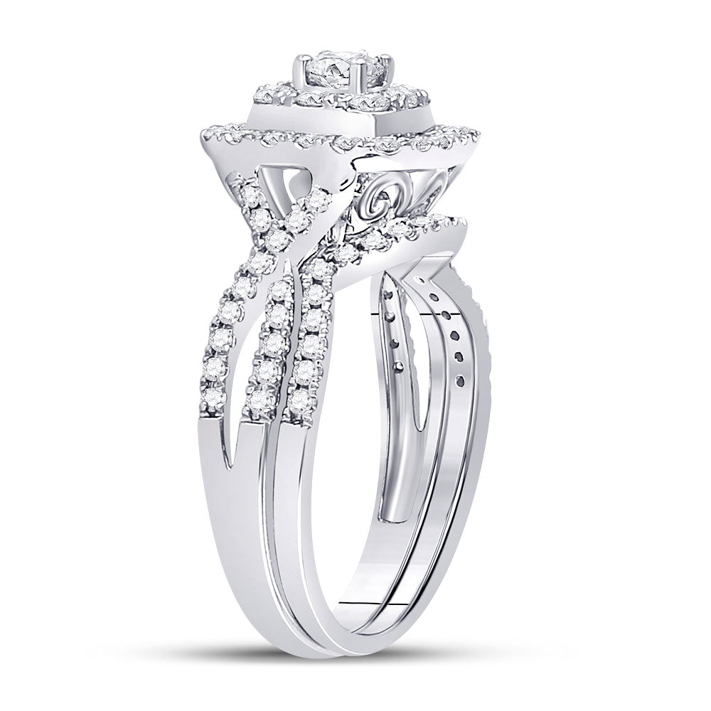 14kt White Gold Round Diamond Bridal Wedding Ring Band Set 1 Cttw