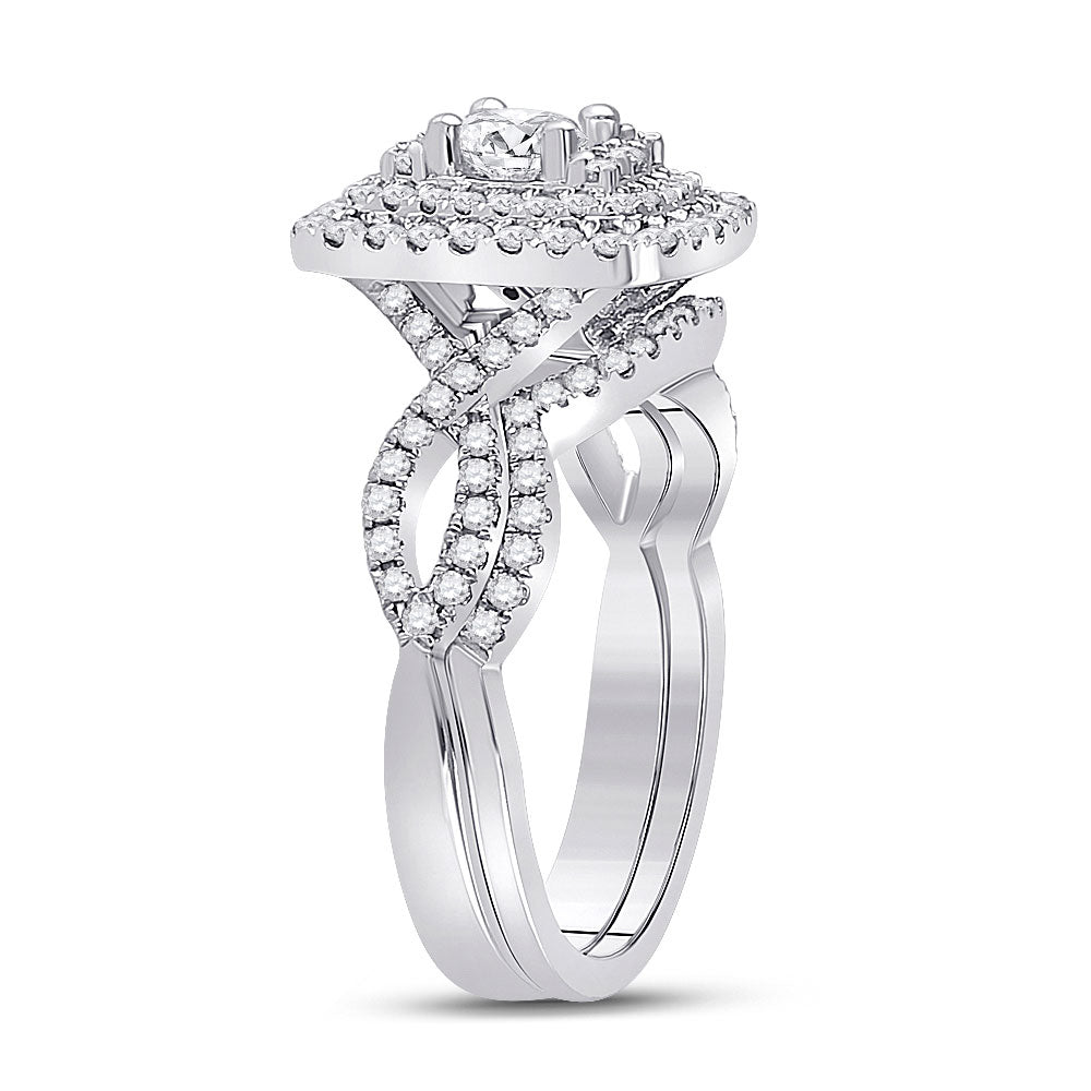 14kt White Gold Round Diamond Bridal Wedding Ring Band Set 1 Cttw