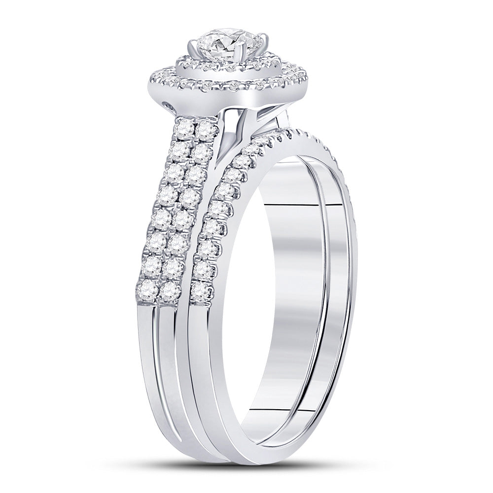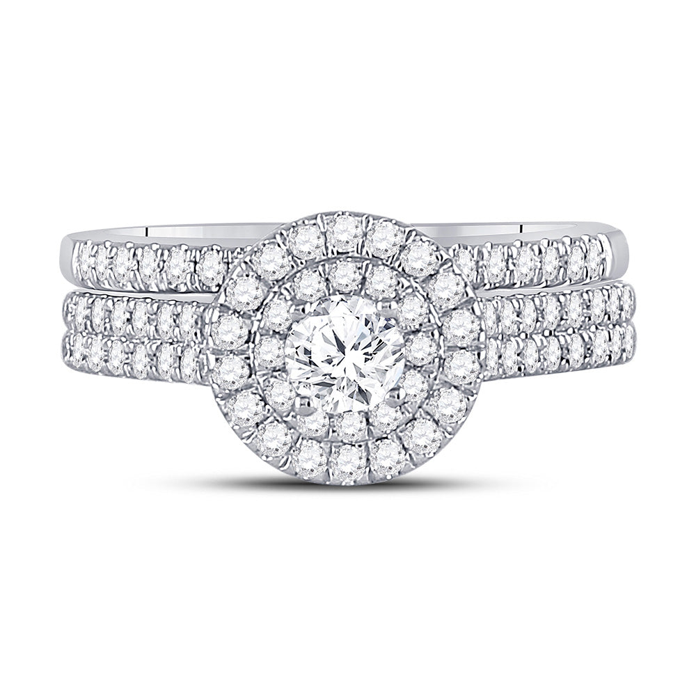Lazaro 14kt White Gold Round Diamond Halo Bridal Wedding Ring Band Set 1 Cttw