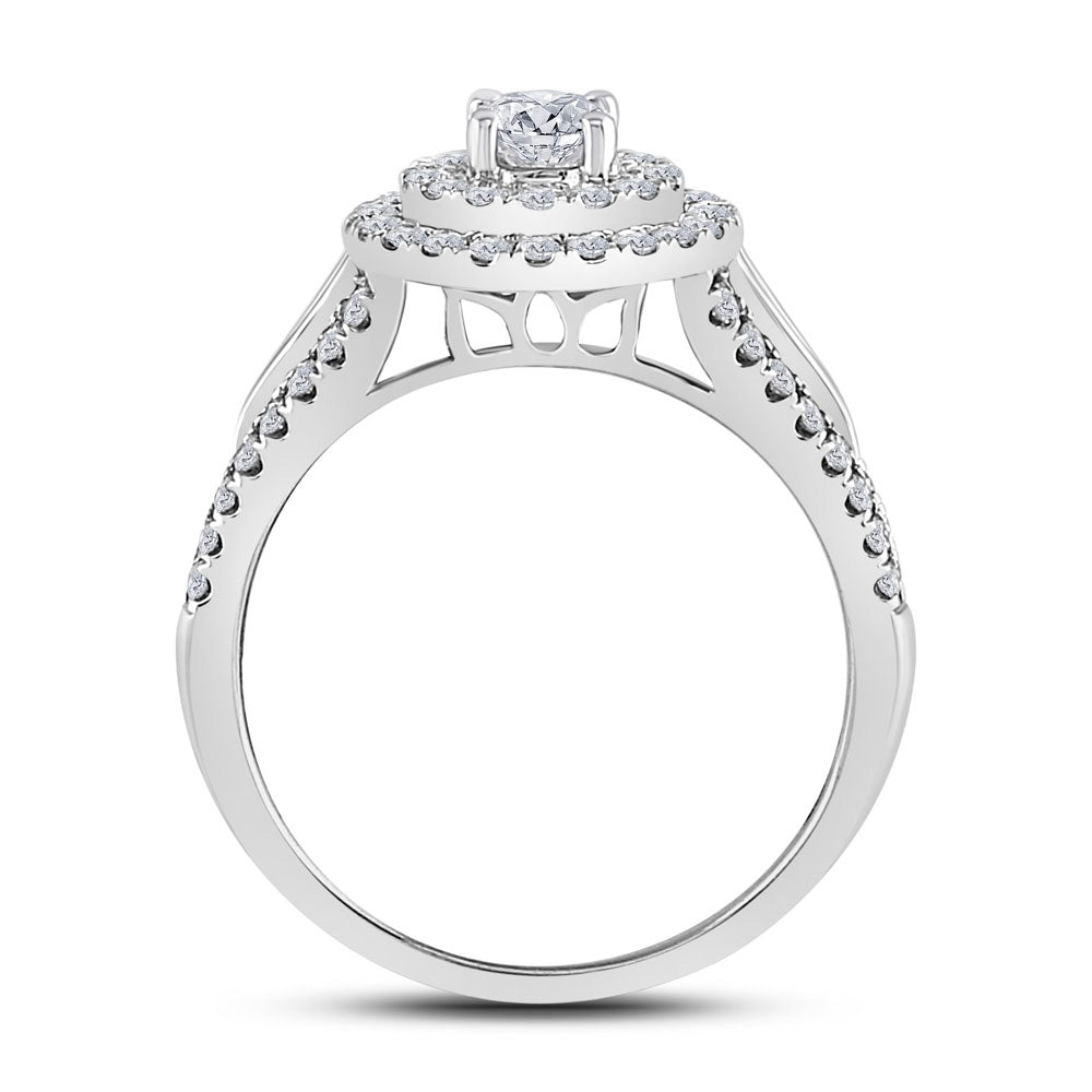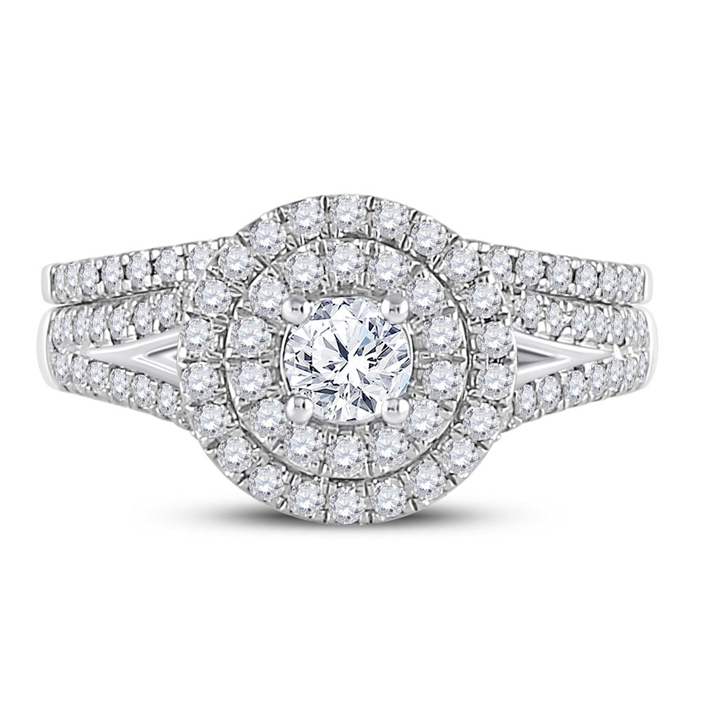 14kt White Gold Round Diamond Halo Bridal Wedding Ring Band Set 1 Cttw