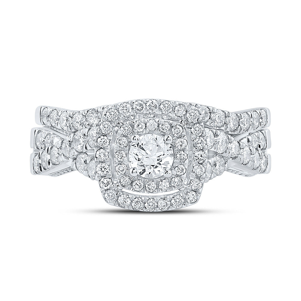 14kt White Gold Round Diamond Halo Bridal Wedding Ring Band Set 1 Cttw