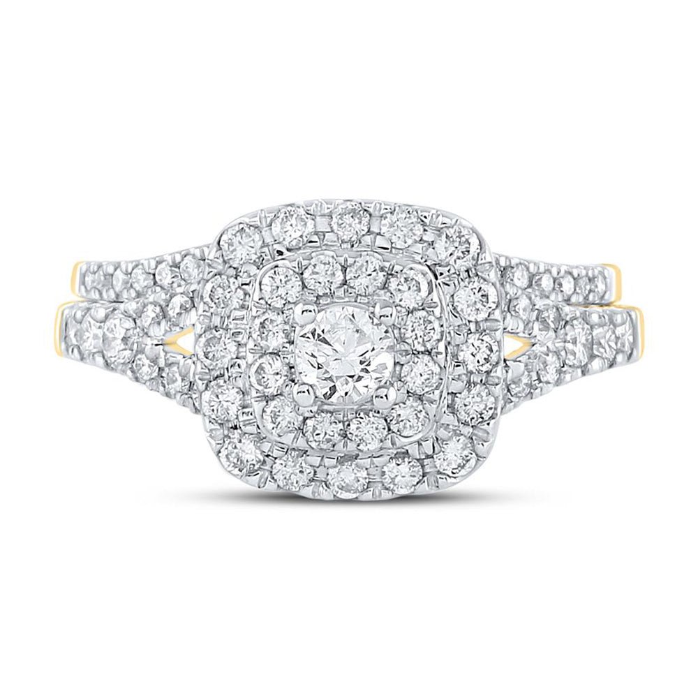 14kt Yellow Gold Round Diamond Halo Bridal Wedding Ring Band Set 1 Cttw