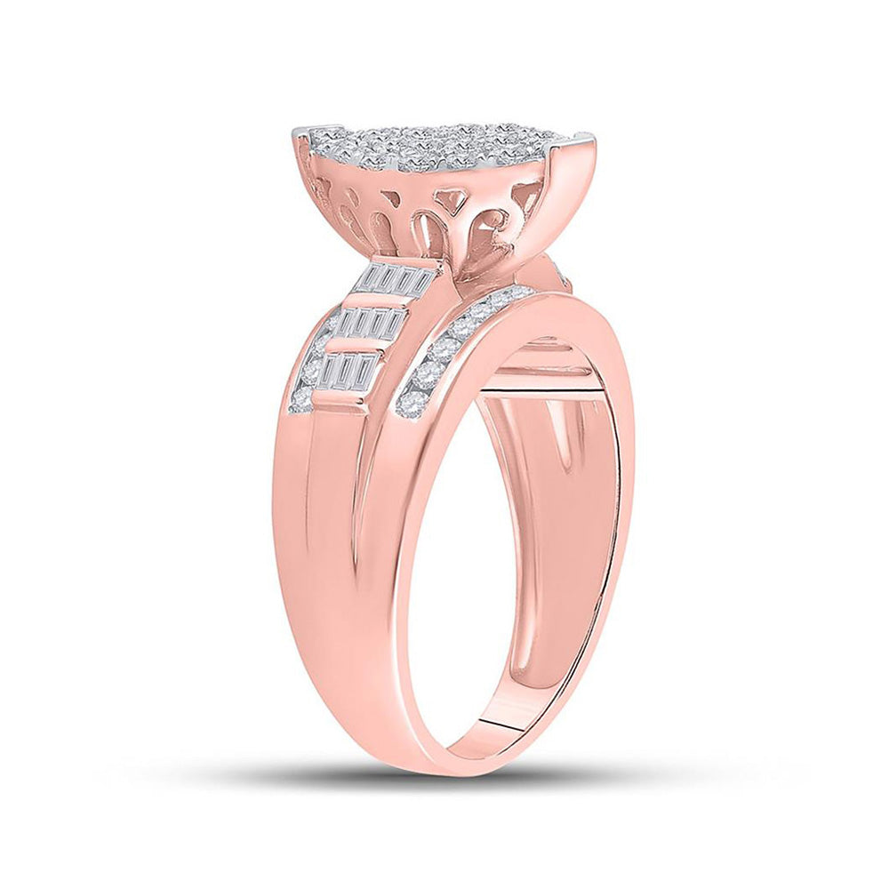 10kt Rose Gold Round Diamond Cluster Bridal Wedding Engagement Ring 1 Cttw