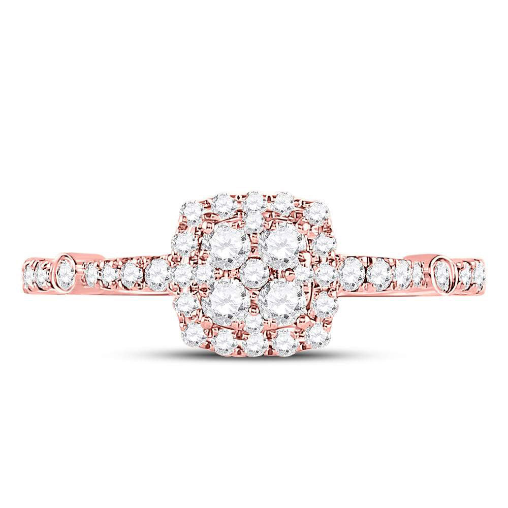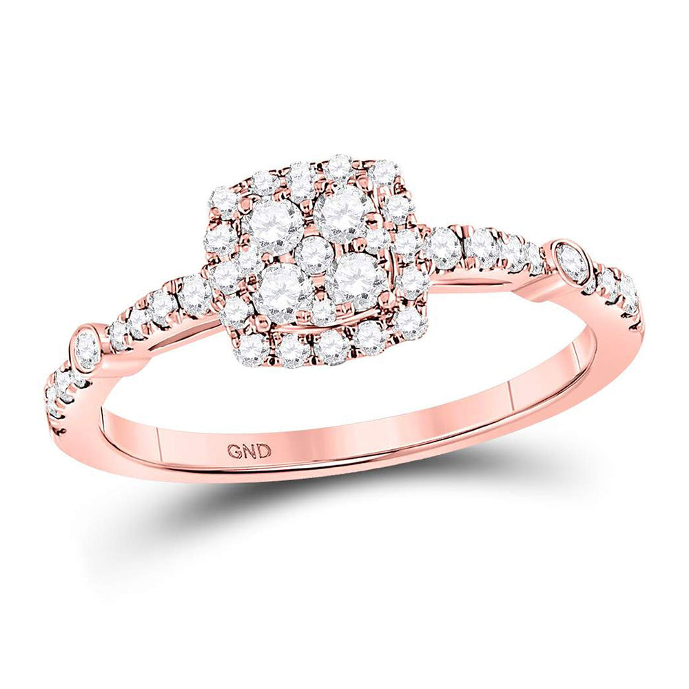 14kt Rose Gold Round Diamond Square Cluster Bridal Wedding Engagement Ring 1/2 Cttw