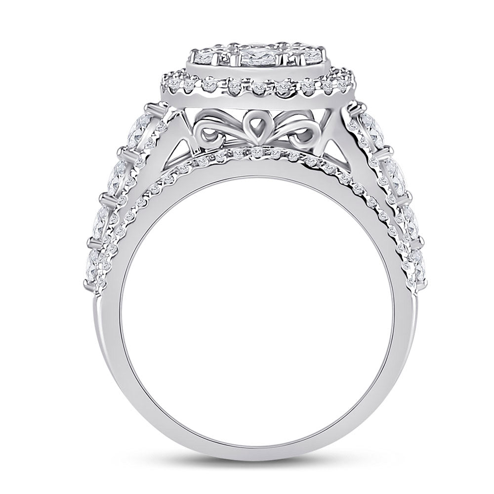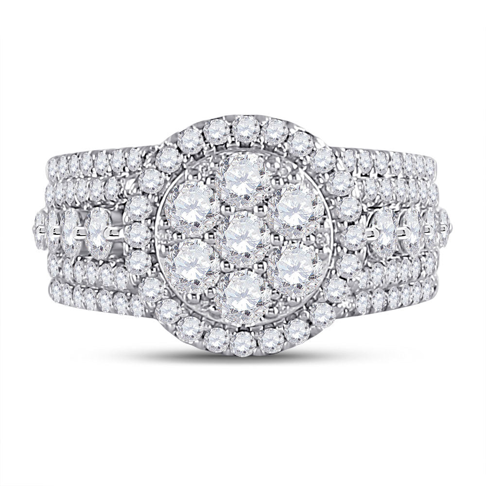 14kt White Gold Round Diamond Cluster Bridal Wedding Engagement Ring 2 Cttw