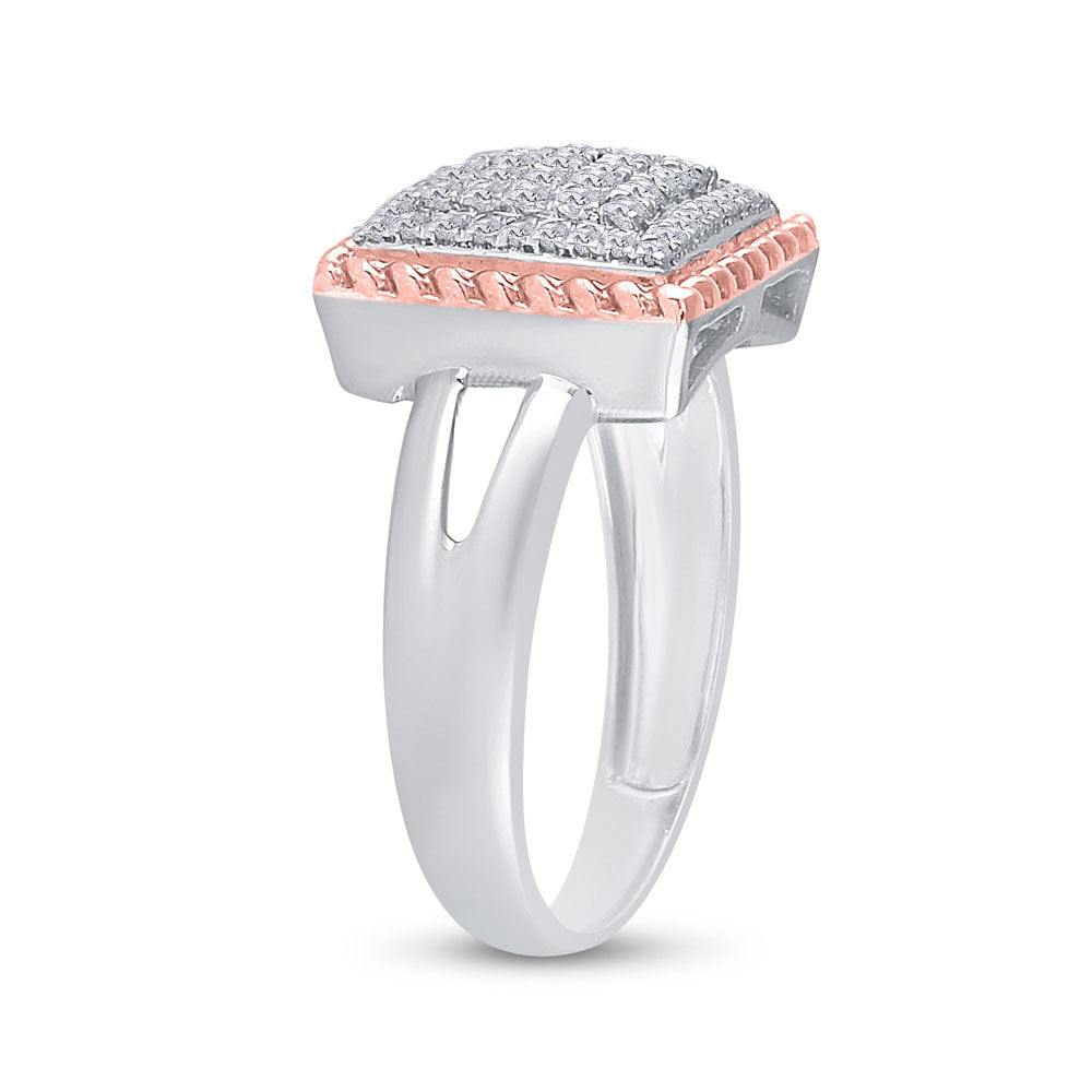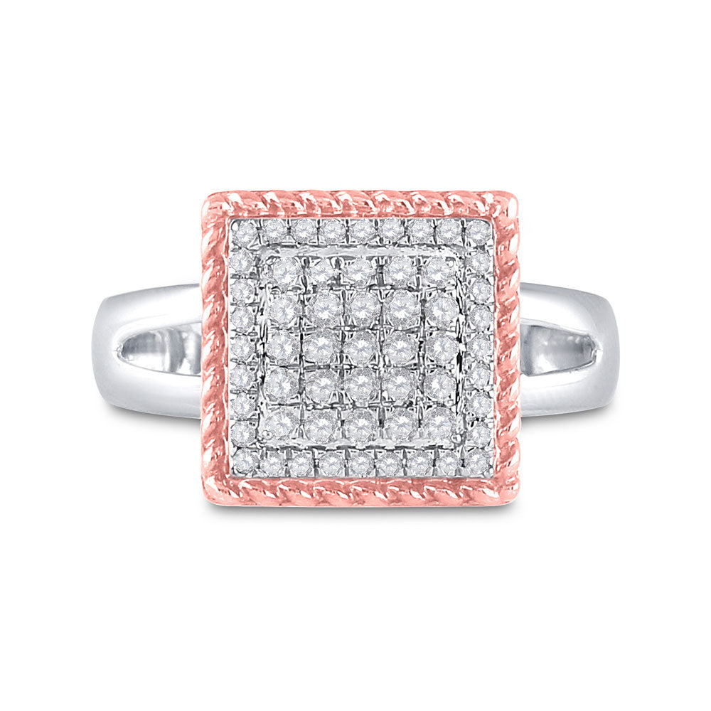 10kt Two-tone Gold Womens Round Diamond Rope Square Cluster Ring 1/3 Cttw
