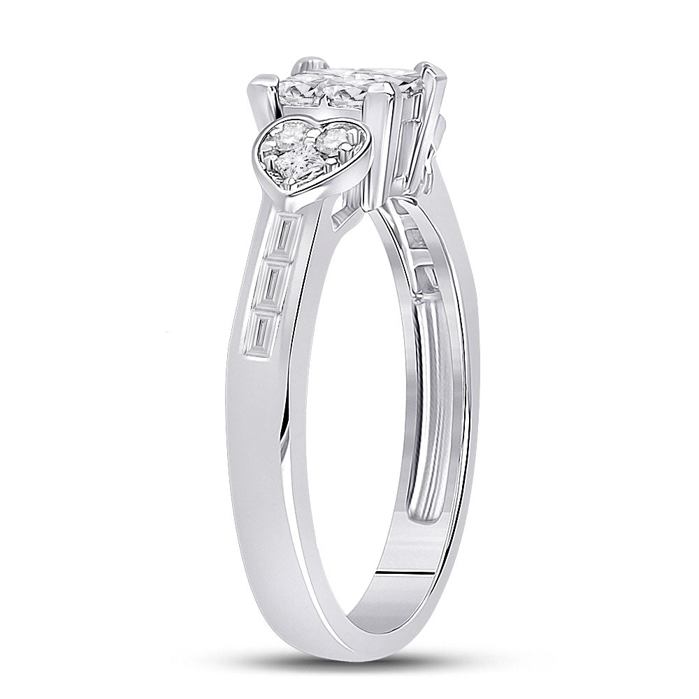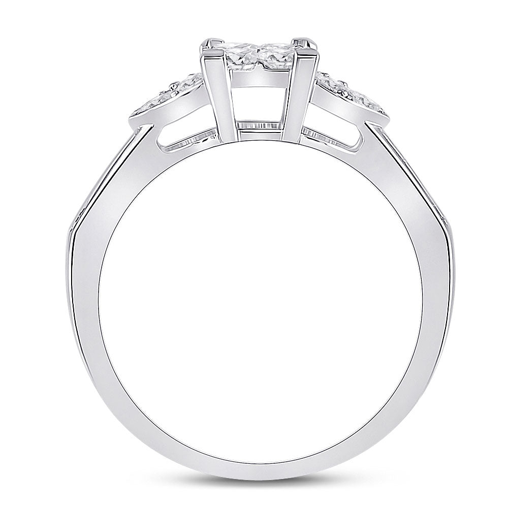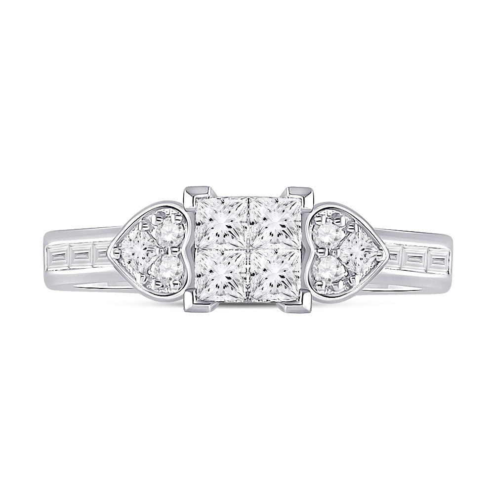 14kt White Gold Womens Princess Diamond Square Heart Cluster Ring 3/4 Cttw