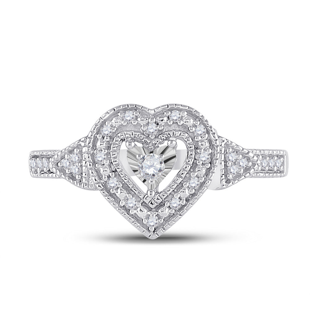 Lazaro Sterling Silver Womens Round Diamond Heart Ring 1/8 Cttw