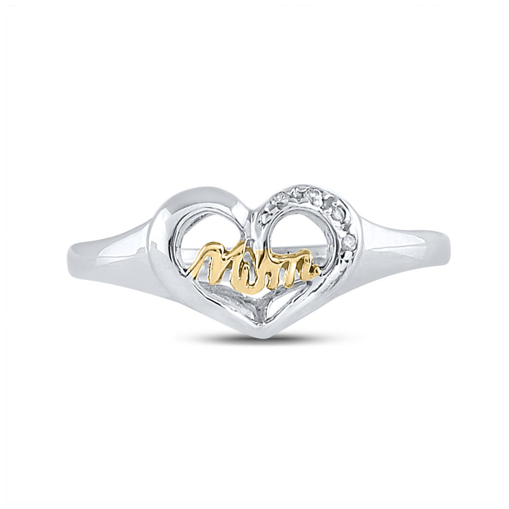 Lazaro Sterling Silver Womens Round Diamond Mom Heart Ring .02 Cttw