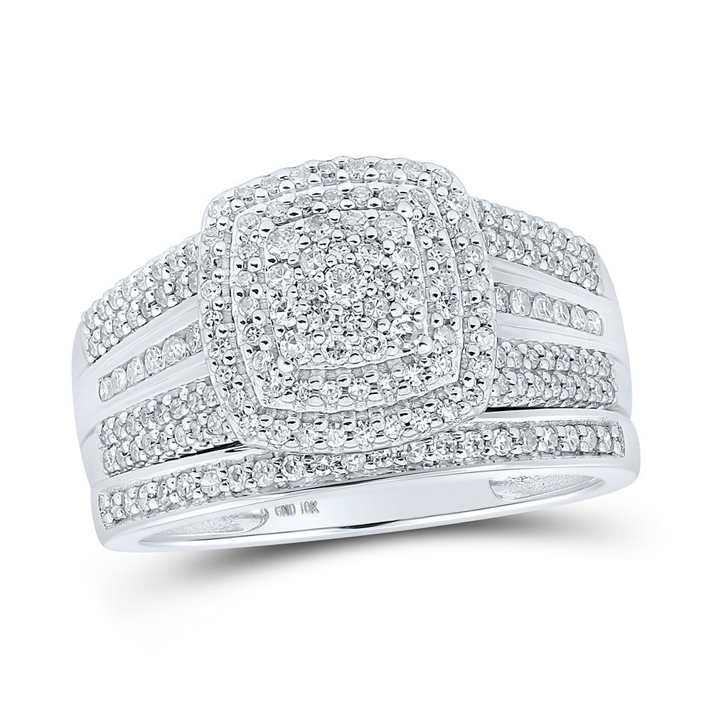 Lazaro 10kt White Gold His Hers Round Diamond Square Matching Wedding Set 3/4 Cttw