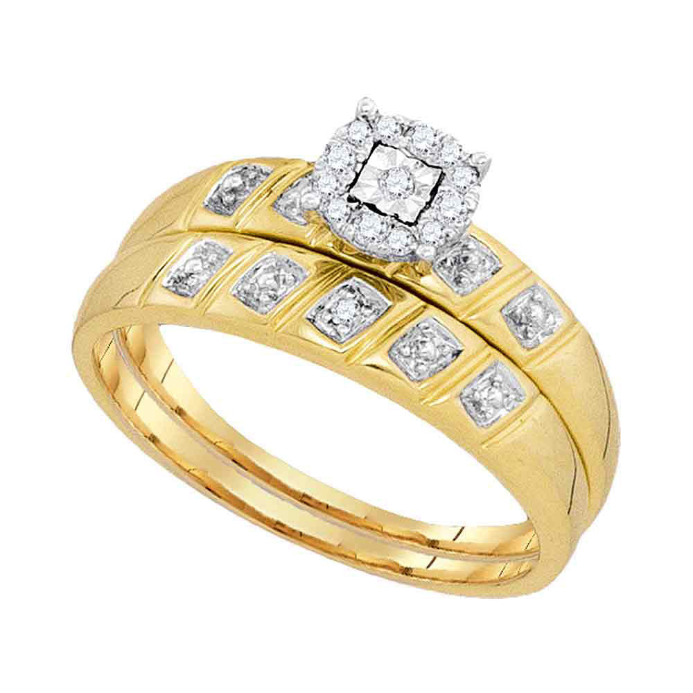 Lazaro 10kt Yellow Gold His Hers Round Diamond Solitaire Matching Wedding Set 1/10 Cttw