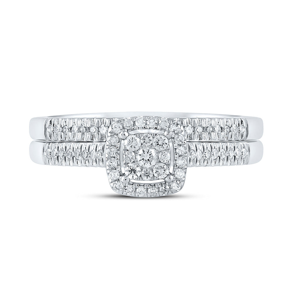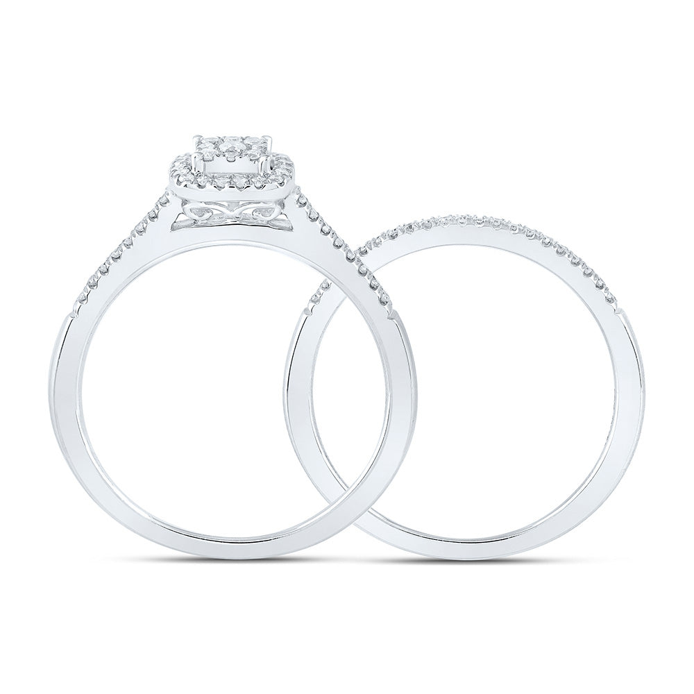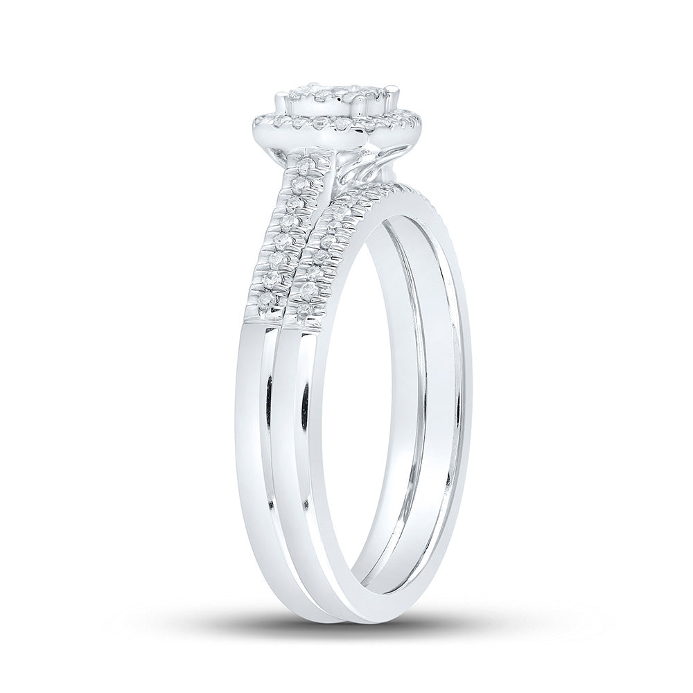 10kt White Gold Round Diamond Halo Bridal Wedding Ring Band Set 1/4 Cttw