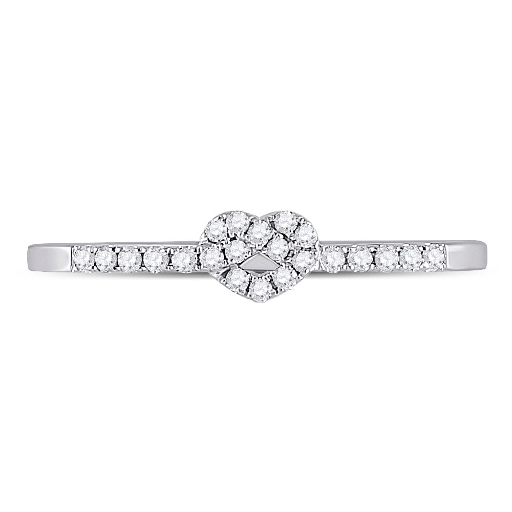 10kt White Gold Womens Round Diamond Heart Stackable Band Ring 1/8 Cttw